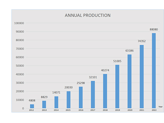 Lo siguiente es nuestra capacidad de producción de los últimos siete años.